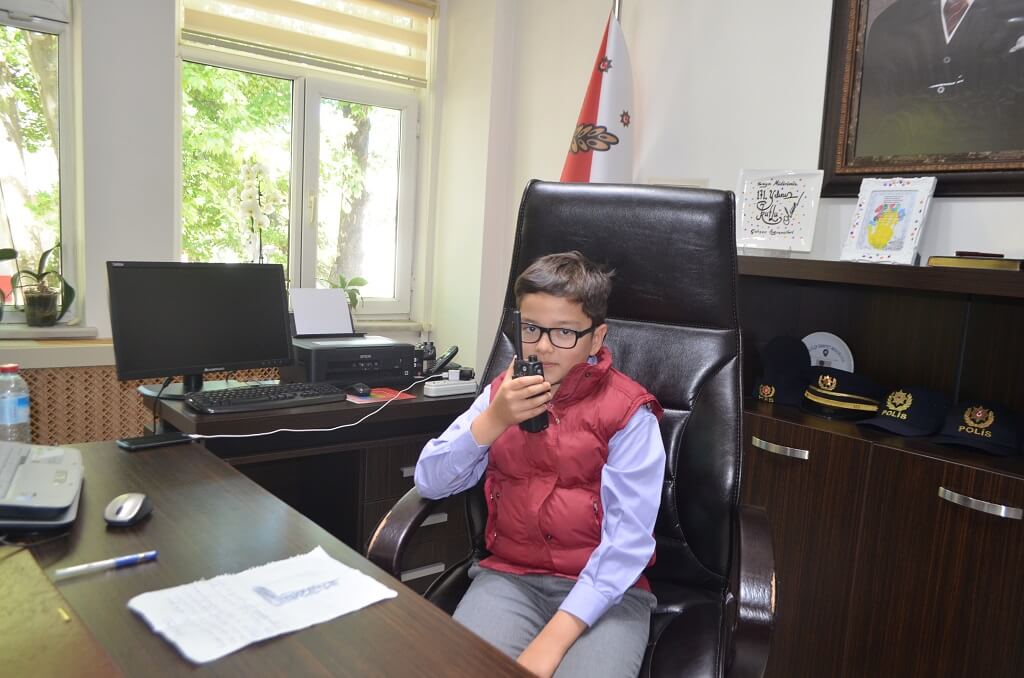 23 Nisan Ulusal Egemenlik ve Çocuk Bayramı dolayısıyla Sınıf Öğretmenleri Rafet Keleş ve Sahire Turgut ile birlikte Öğrencileri Efe Kan Acar, Yavuz Selim Uçar ve Nilüfer Meyvacı Emniyet Müdürü İsmail Baş' ı makamında ziyaret ederek bir günlüğüne Emniyet Müdürü koltuğunu devraldılar. İlçe Emniyet Müdürü Baş koltuğu devralan yeni Emniyet Müdürü Acar' a “göreviniz hayırlı olsun sayın müdürüm” dedi.